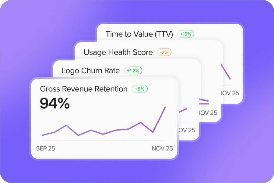 AI-generated health score built from usage, sentiment, adoption, and 1,000+ behavior signals